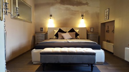 A második emeleten található franciaágyas Silver szoba a hűvös elegancia jegyében került kialakításra. Légkondicionálóval, Tv-vel és bluetooth-os hangsugárzóval felszerelt.